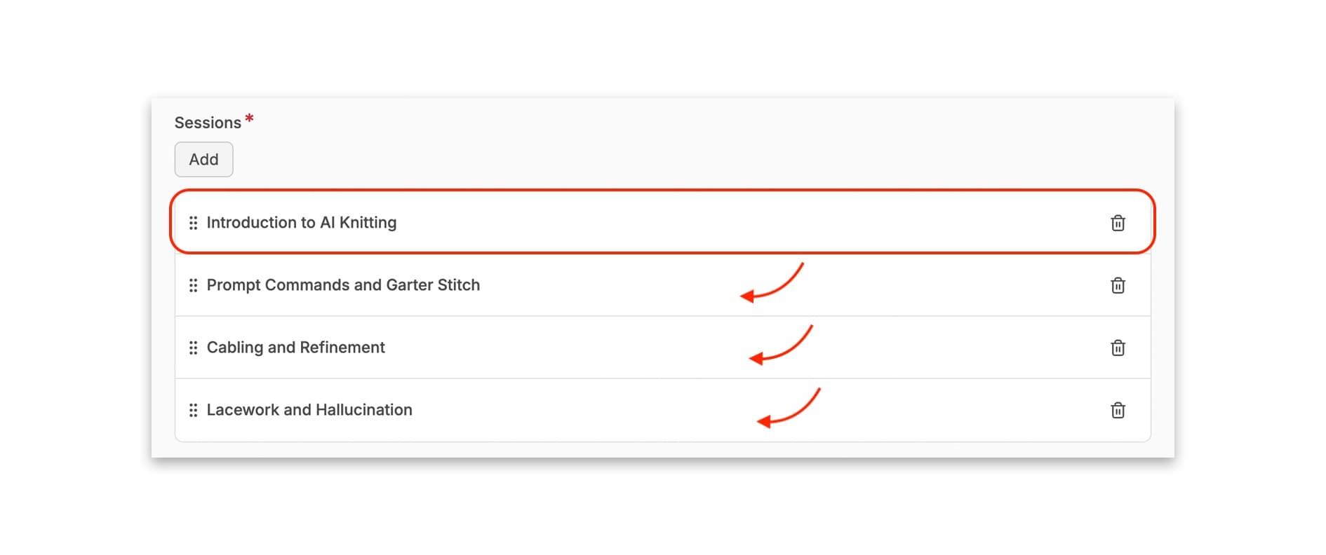 You can also re-order the resources you have added by clicking on the ‘move’ icon, holding and dragging them up to the position you want them to sit in.